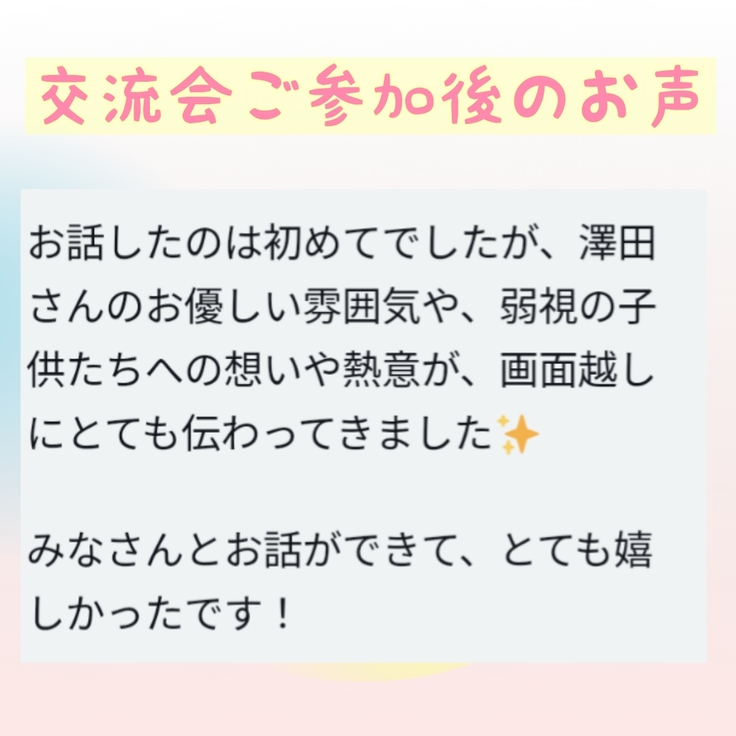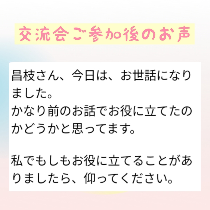 昨日開催しました交流会のご参加後のお声を頂きましたので、