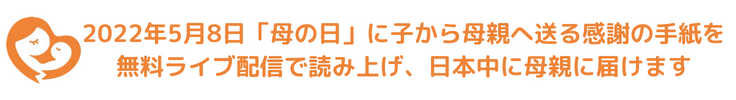 子から母親へ送る感謝のメッセージを事前に1000通集め、2022年5月8日(日)に集めたメッセージの一部を厳選し、無観客の無料ライブ配信で読み上げ、日本中の母親に届けます。