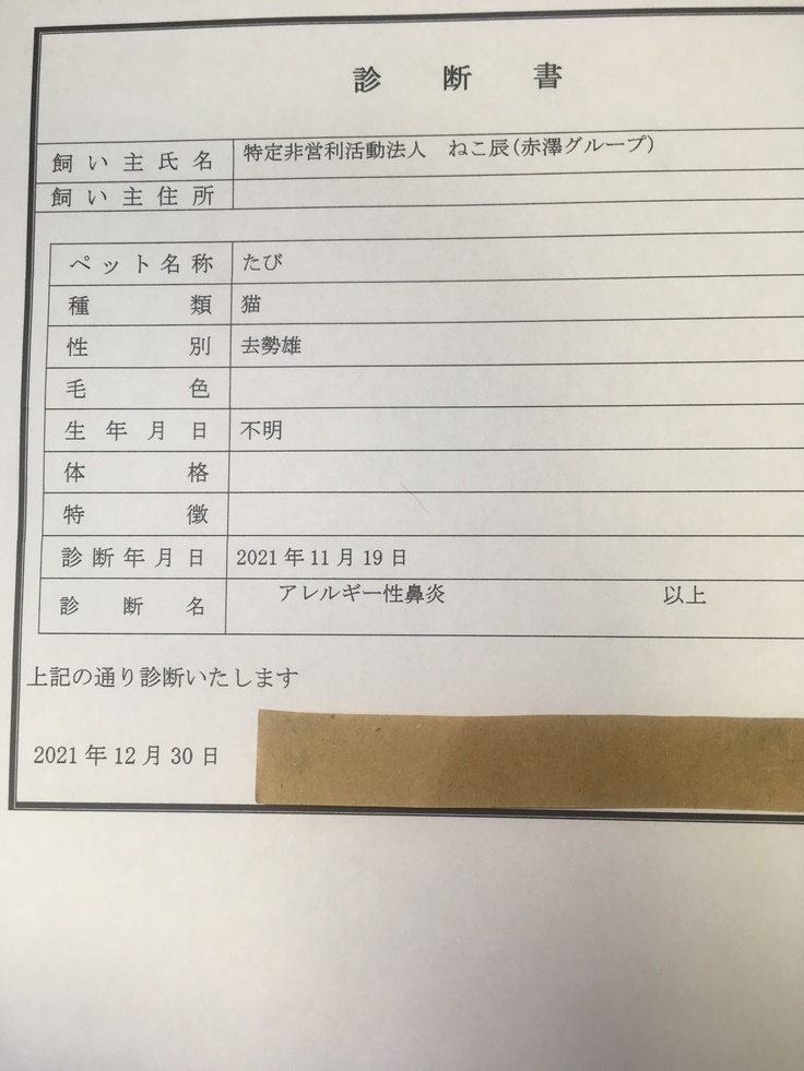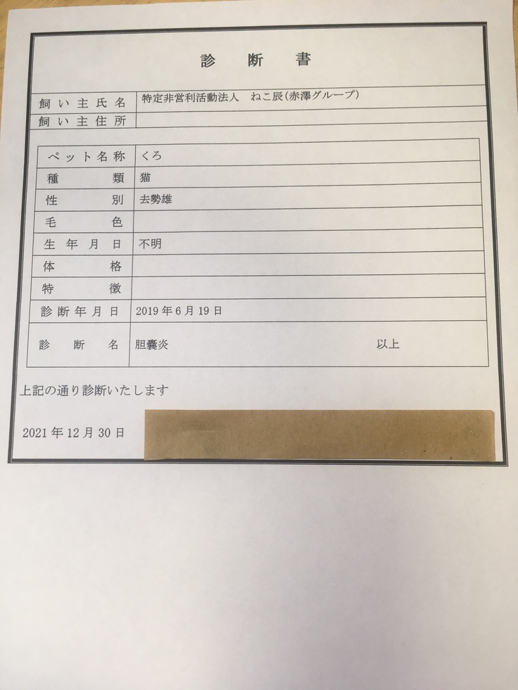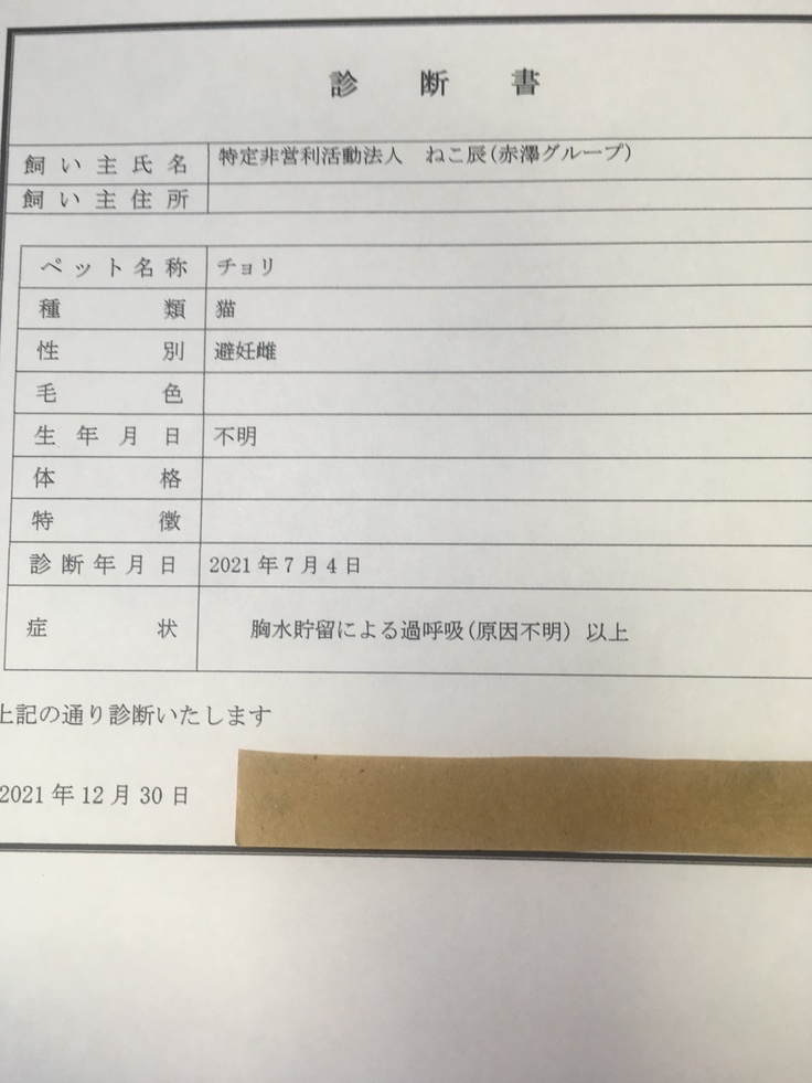 診断や治療見積もりは掲載させていただいたとおりですが、各頭の病状等、診療内容の変更等により見積金額と実際かかった費用とに変更が生じる可能性もあります。その際、資金はこの12匹の中で適宜割振りたいと思います。何卒ご理解ご了承いただきますようお願い致します。ご支援いただきました皆様には、プロジェクト完了後に詳細なご報告を致します。