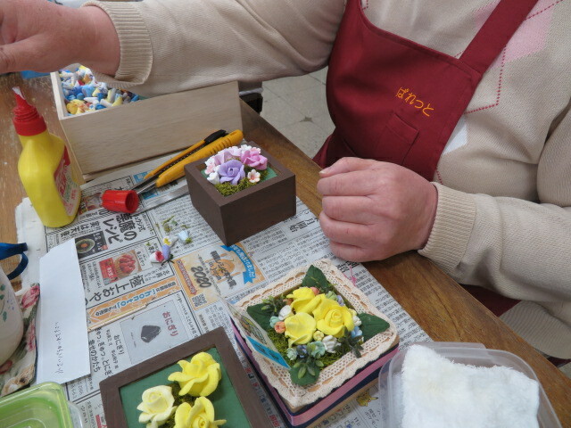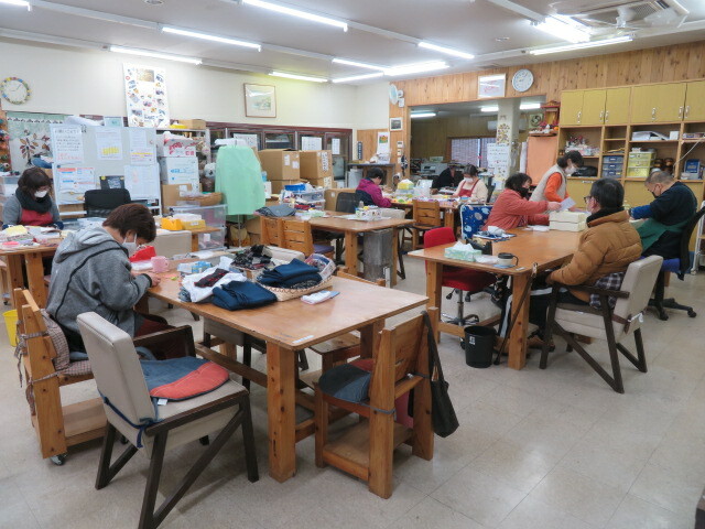 主な作業内容としては、北海道より仕入れた昆布の袋詰め作業や古布等を使ったバックや小物作り、樹脂粘土を使用しバラなどの花を造りフレームや陶器に飾り付け、その他に委託にて行うギフト包装作業等です。