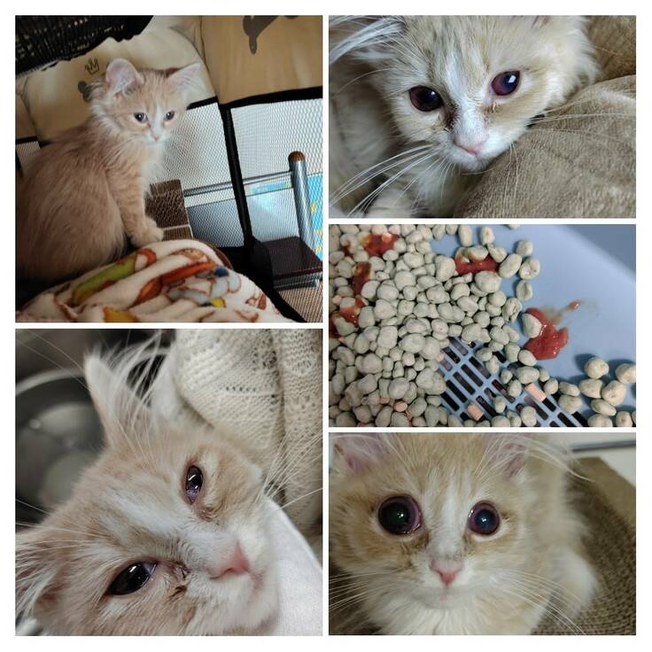 軟便が続くものの、日に2、3回程度に戻り、くしゃみも日に1回程度になり、目の色も元のブルーの目にほぼ戻ってきました。