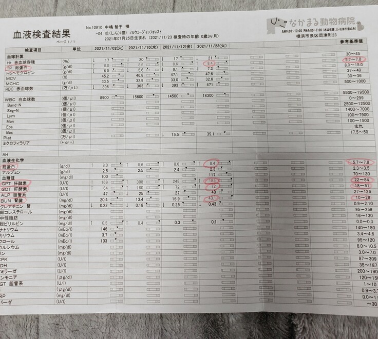 まだ肝臓の数値が良くないけど、白血球や、ミネラルバランスも全体的に良くなってきているそうです。