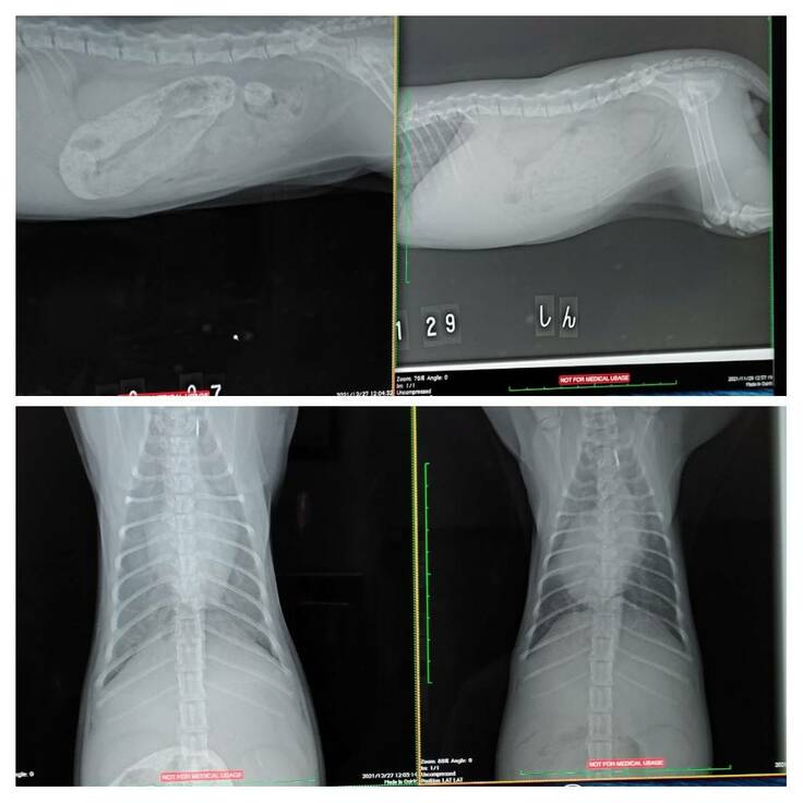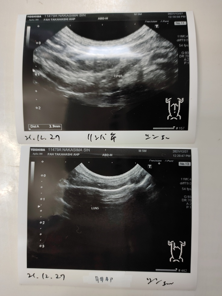下の左右を比べると、成長しているのも分かりますが、白い影も見えていて、肺の辺りが炎症を起こしているので、これも、"新薬の量が足りてない可能性" があるそうです。