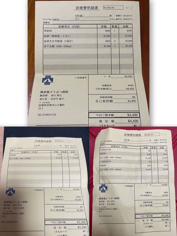 皆様から頂いた暖かいご支援は、手数料を除き全てサンの治療費に使わせて頂きます。