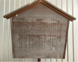 現在のような木板に直筆で揮毫する説明板では,たとえ雨・雪を避けることができる軒下等に設置していても数年のうちに説明内容が読めなくなってしまうため,金属製の野外展示専用の説明板に変更が必要です。併せて,英語表記も必要です。