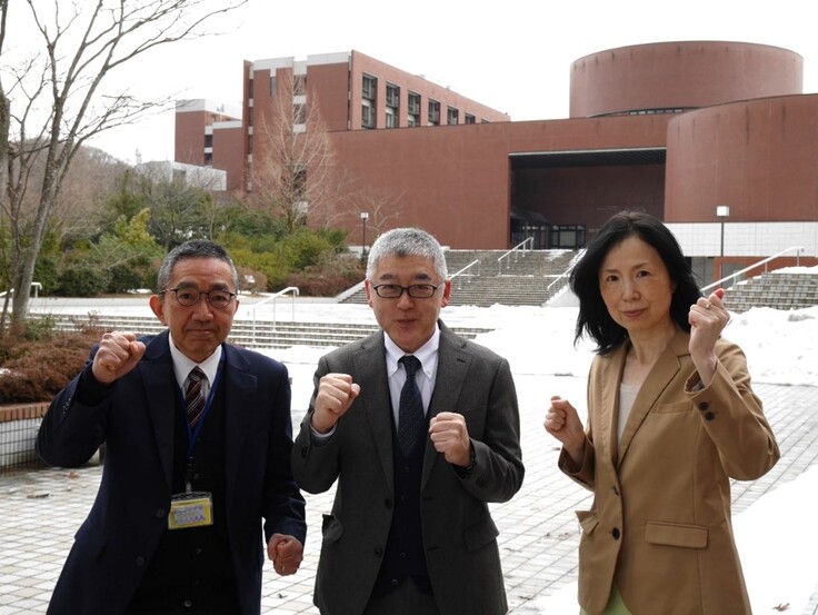 金沢大学学友支援室長:米林利晃(左),同資料館長:足立拓朗(中央),同研究・社会共創推進部長:北村久美子(右)