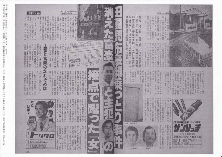 1985年8月1日号の週刊文春です。ページ中央が殺されたとされる佐藤松雄さん。博多の山中から出てきた白骨遺体が佐藤さんとは別人だと証明するために、佐藤松雄さんの写真(できれば鮮明なオリジナル)を手に入れたい。そこで文芸春秋社に問い合わせたところ、ここに移っている佐藤さんは失踪者ということで他社から借りたものであり、オリジナルは車内には存在しないとのこと。残念。