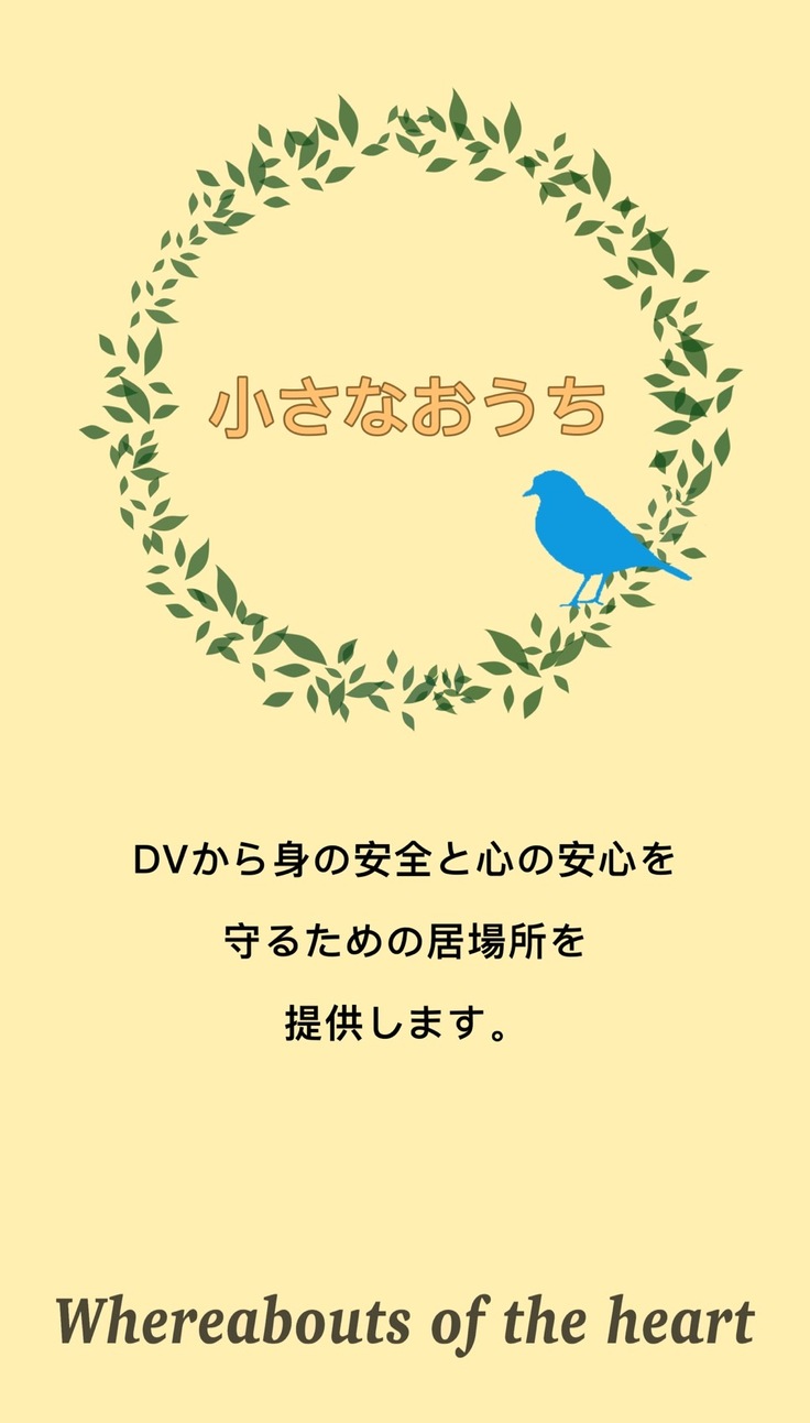 シェルターの名前を「小さなおうち」と名付けました。おうちは小さくてもそこで心安らかに過ごしてまず自分を取り戻す、それから将来に向けてちょっとづつ前に進めるようになれれば良いな、そんな気持ちを込めました。