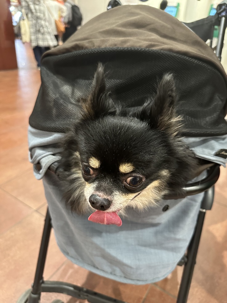 昨日はカートに乗ってお出かけすることもできました。ずっと尻尾を揺らしながら前のめりで景色を楽しんでました。