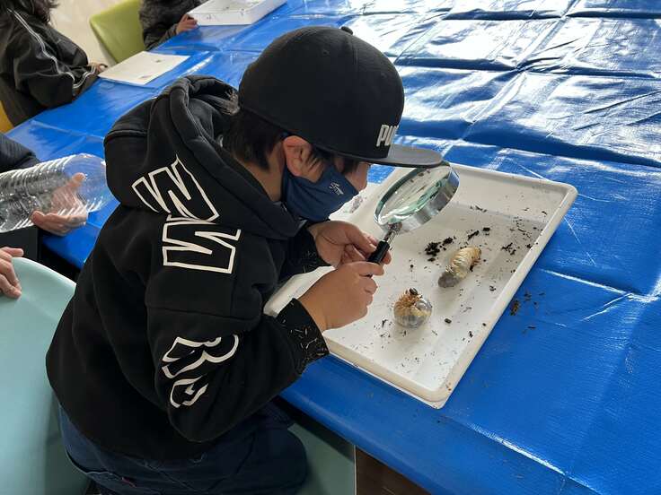 地域の小学校や町内会等から来てくれた児童とともに、カブトムシが育つ自然環境に限らず、人間と自然の共生について考える機会を設けます。ぺットショップで昆虫を購入することが一般的となった今日、卵や幼虫からカブトムシを採取・観察する体験は、子どもたちの生物や環境への関心を高めるきっかけとなると考えています。