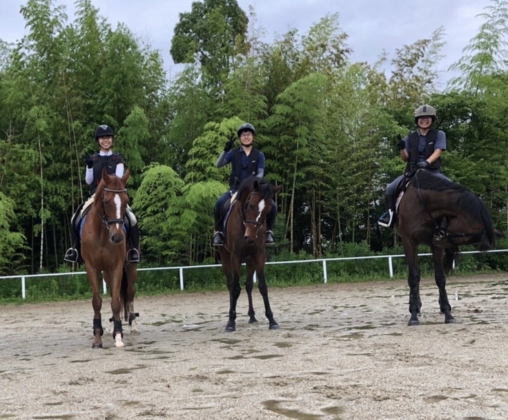 私が所属する愛教大馬術部は愛教大で現在活動している部活の中で最も歴史が古く、73年もの間続いてきた伝統のある部活です。現在は部員5名と馬3頭で活動しており、毎日の世話を通して馬の管理について学びながら、乗馬技術向上のため皆で日々練習に取り組んでいます。