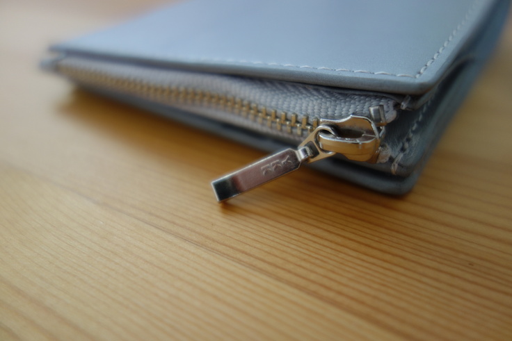 シルバー色の財布にはシルバー色のファスナー、キーホルダーを採用