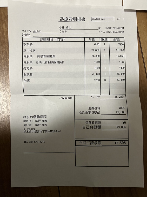 右目の膿が酷く、右目がとても小さくなってしまっている事、腫瘍がこの一週間でとても大きくなっている事を先生にお伝えしました。。