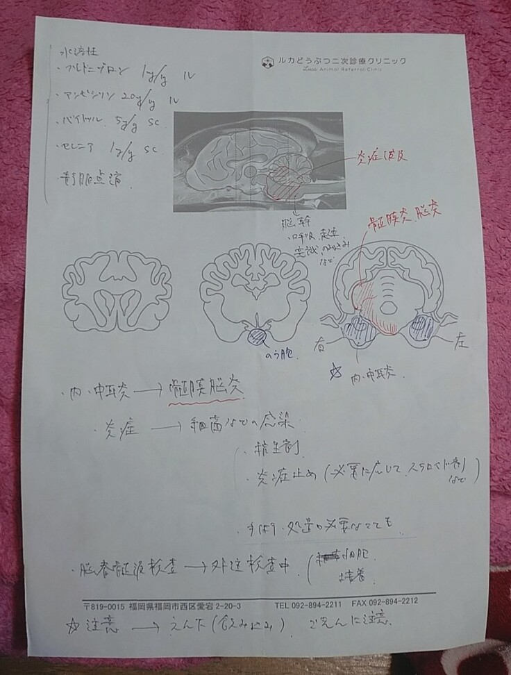 花丸の病状は、内耳炎による細菌が薄い骨の隙間から脳に入り込み、髄膜炎を起こしやがて脳炎を引き起こしました。