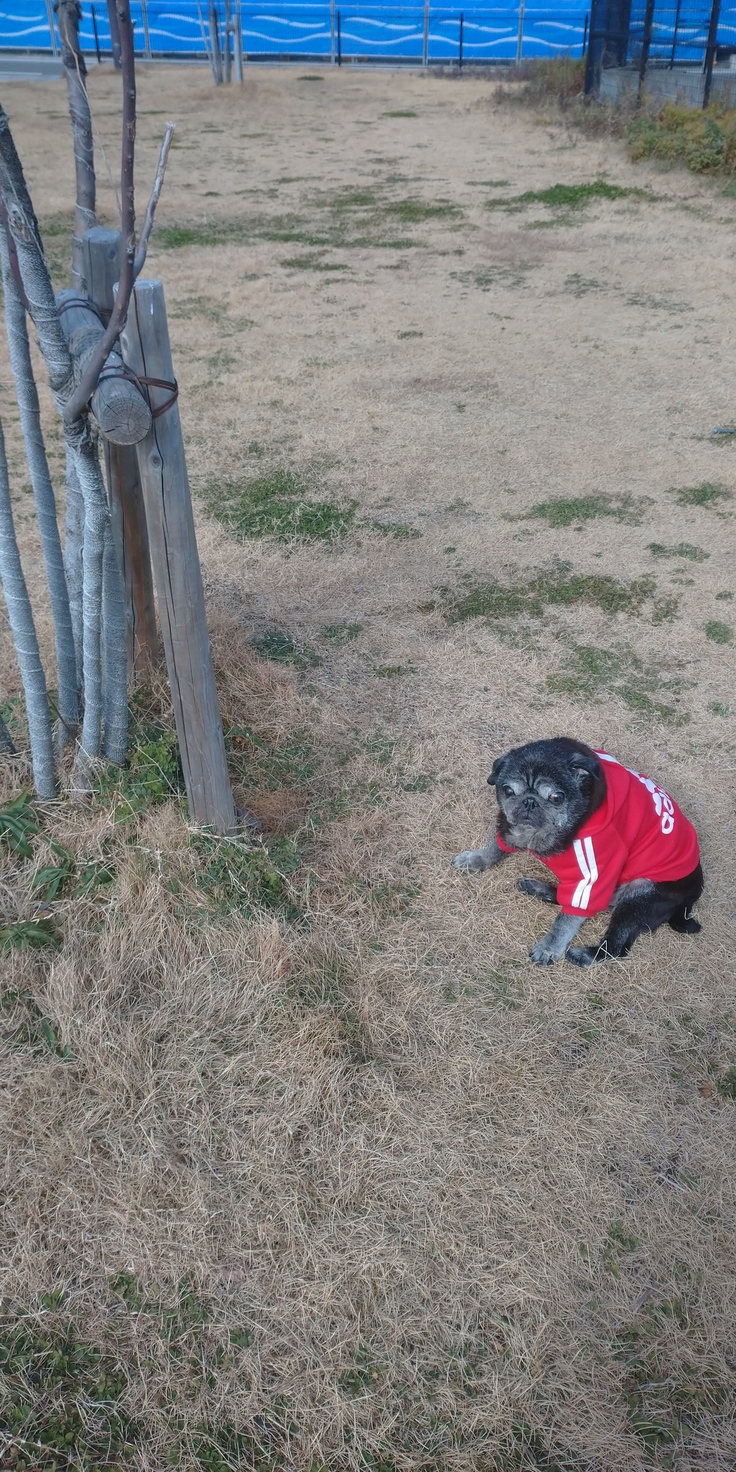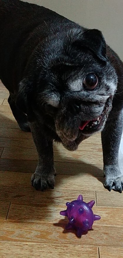 家族は、主人と私、そして黒パグの花丸13才9ヶ月です。