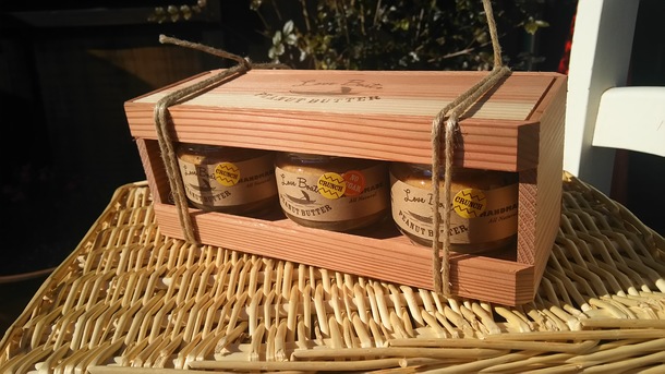 自然栽培で育てた千葉半立落花生の新豆第一号250gとピーナッツバターサンプル小瓶入り6種類