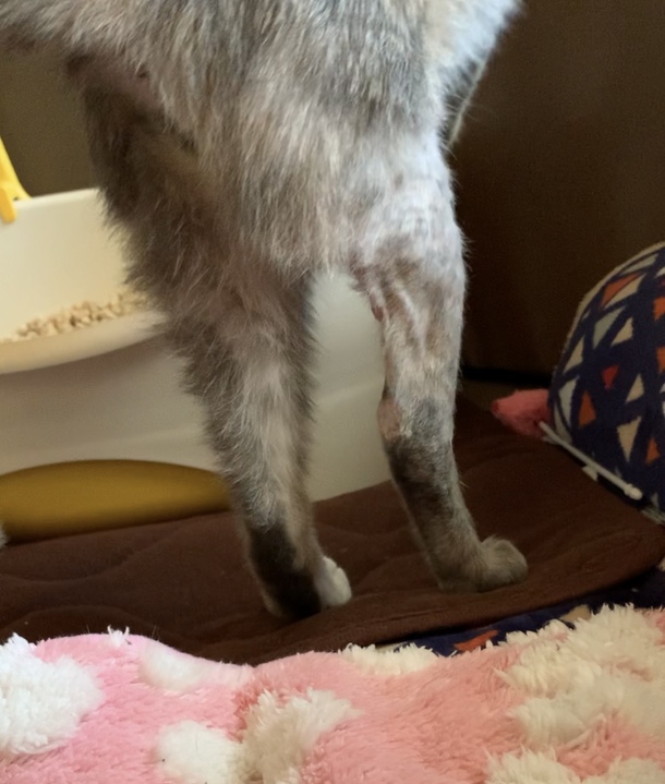 約1ヶ月後ギブスが外れました。筋肉も落ちて弱々しくてまた折れちゃいそうで⤵️元に戻るのか心配でした😭また少しの間ゲージ生活です。