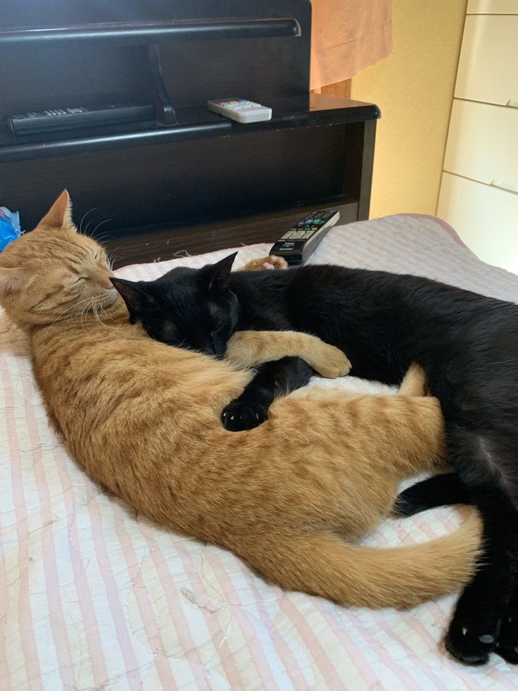 優愛ちゃんも幸多郎君も家に来てもずっとくっついています。寝る時もご飯の時も遊ぶ時もいつも一緒です。2人ともとっても活発な子で我が家のカーテンや壁はボロボロになってきました。我が家にも慣れてきてとっても人懐っこく私のそばでゴロゴロ言ったり、体の上に乗ってきます。