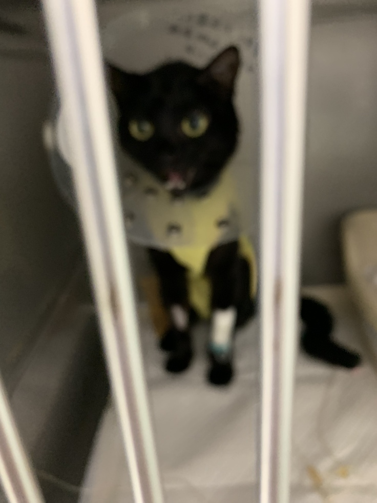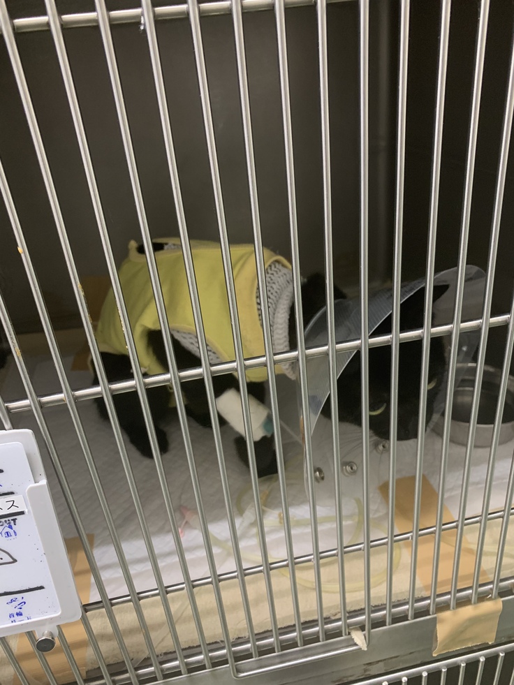 手術後しばらくは経過観察のため入院が続きました。毎日様子を見に行き、私を見ると帰りたそうに鳴いてました。
