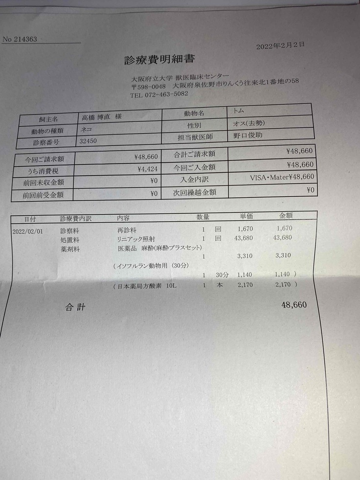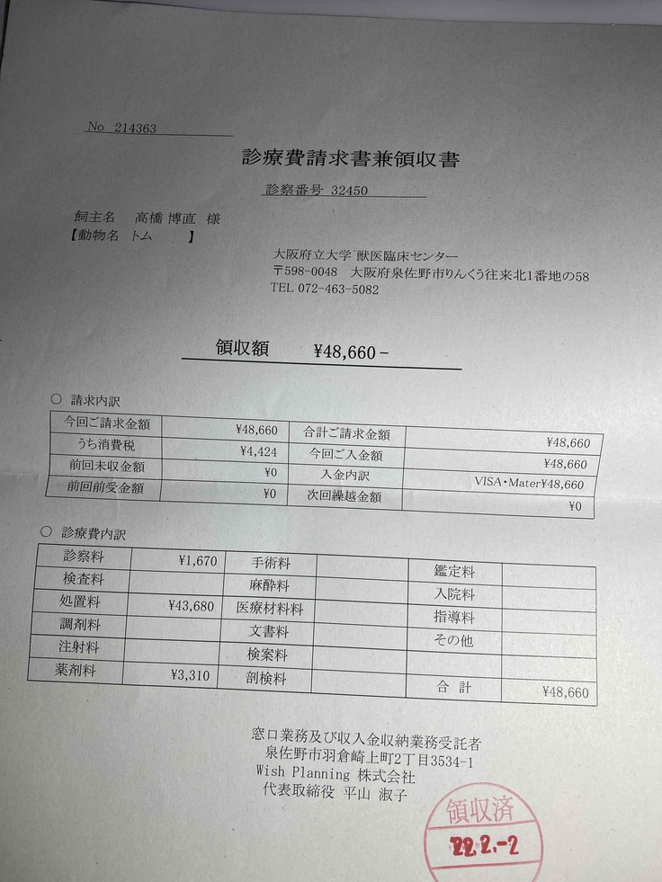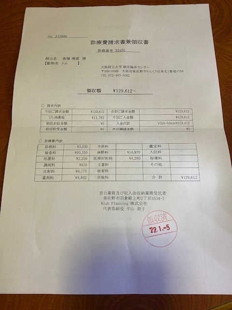 本来、飼い主である私が治療費の全額を負担することは重々承知しております。私自身、実家ともコロナの影響で収入が激減し治療費の捻出が厳しくなりこのまま放置し、死なせてしまうのかとも考えましたが藁にも縋る思いでこのようなお願いとなりました。