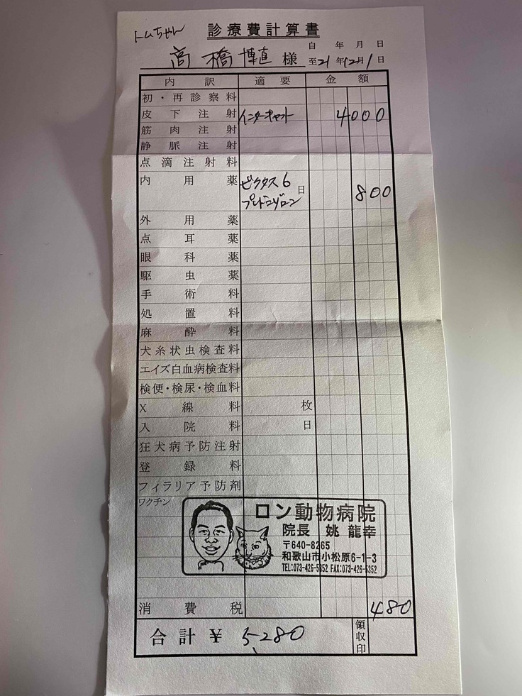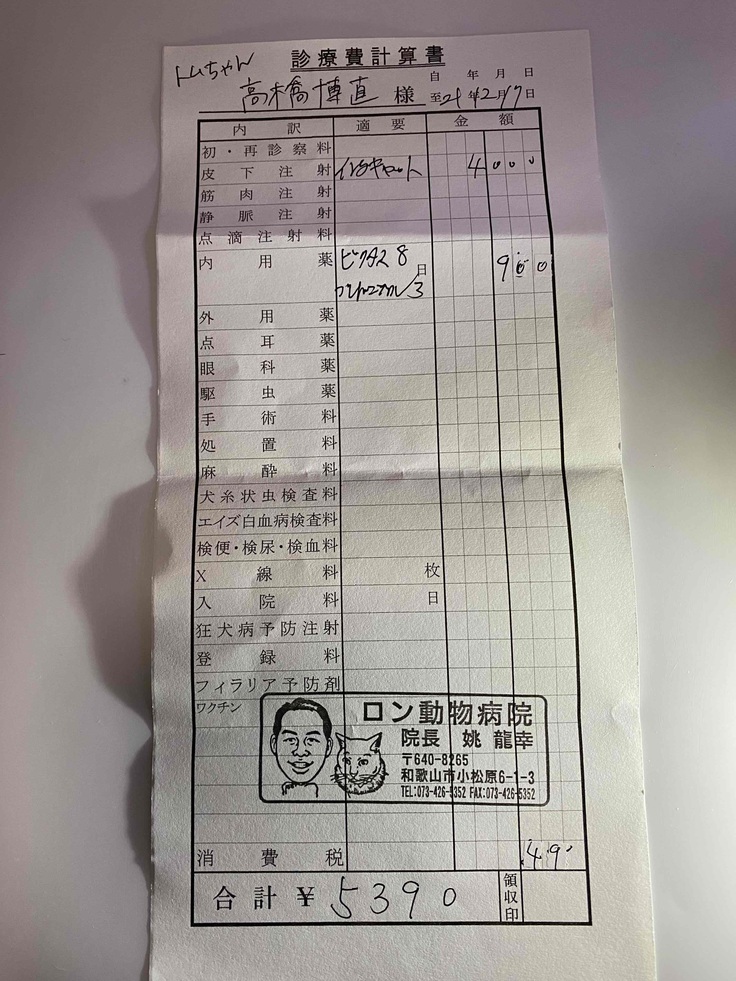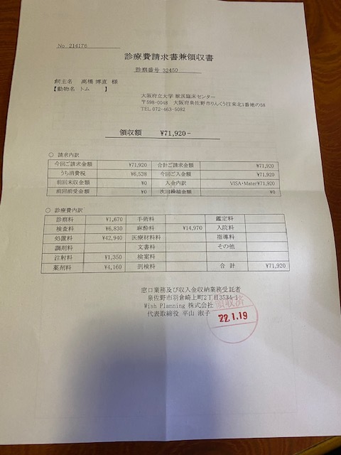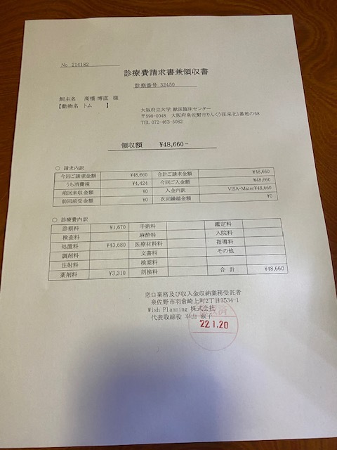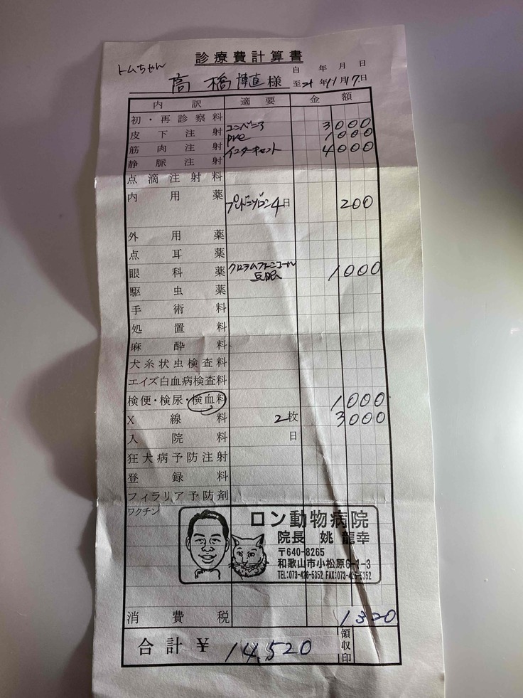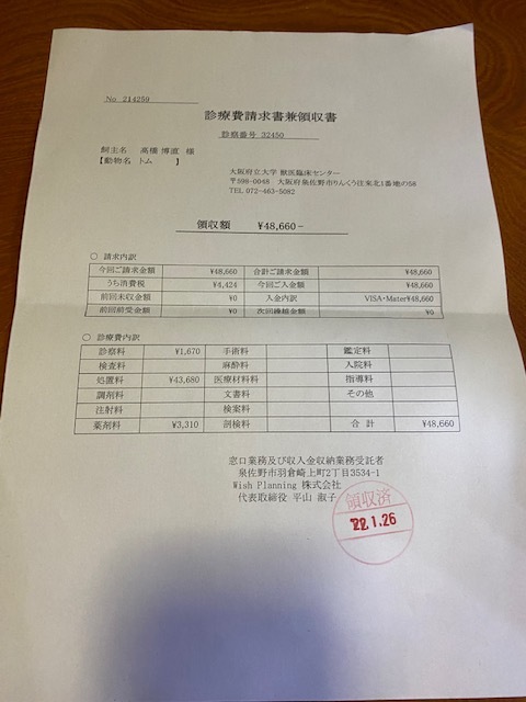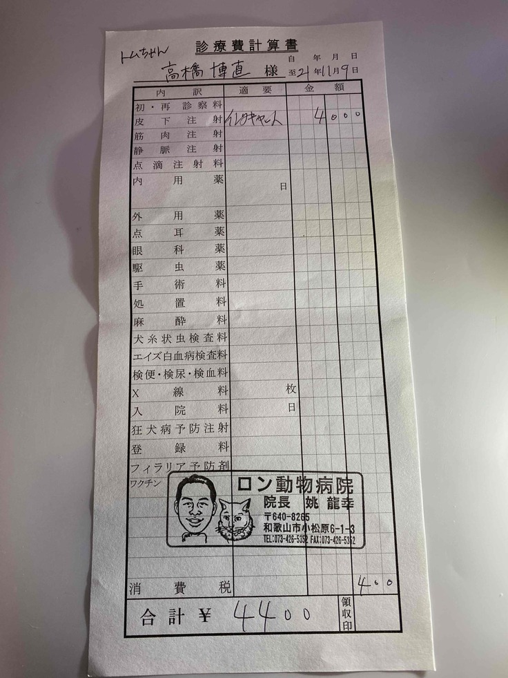 ご支援いただいた金額はトムの治療費のみに利用させていただきます。