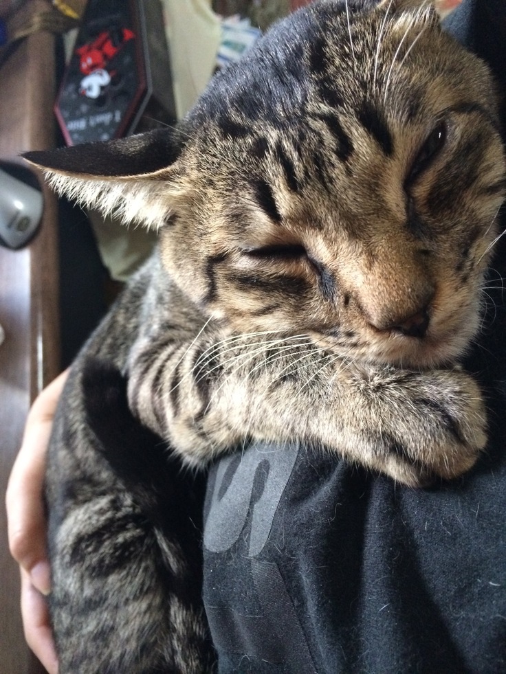 生死を彷徨うくらいに近い大きな病気をしたのにもかかわらず、必ず復活をする奇跡を起こす猫です。今回も奇跡を信じ、一日でも長生きし一緒に過ごせたらと考えています。