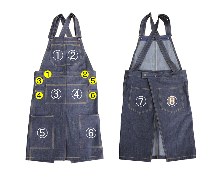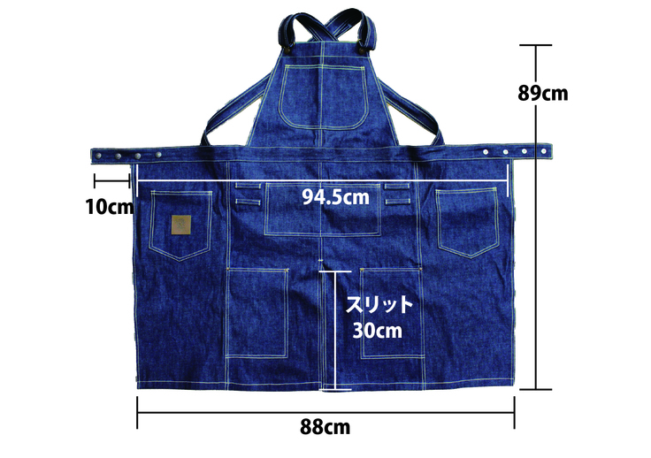 今回のデニムエプロンは、前掛け部分にスリットが付いているため動きやすくなっています。