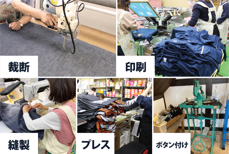 デザイン・裁断・印刷・縫製・販売を行っております。