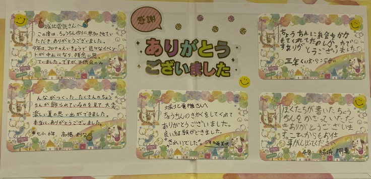 イベント終了後、ちょうちんを思い出の品として子ども会に返却させていただいたのち、子どもたちからメッセージカードをいただきました。その中の一文をご紹介します。