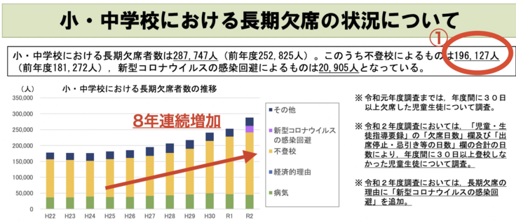 コロナ禍も相まって、年々不登校のお子さんが増加しています。