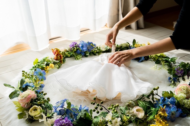 ウェディングドレスに使用されるシルク100%を使用しています。