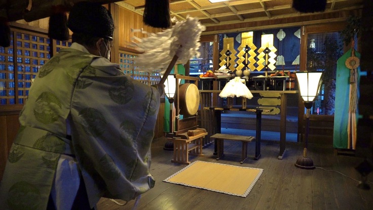 Baby Dressを下記のように神棚に飾っていただき、ご祈祷していただいている様子です。