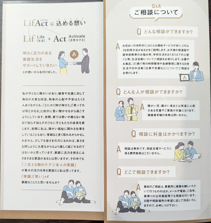 家庭によって悩みなどは様々ではありますが、どの家庭も明るく当事者や保護者にとって楽しい生活を支えていきたいとの思いから立ち上げた事業です。