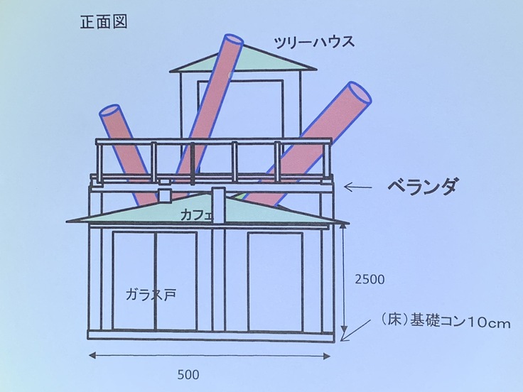 島を訪れてくださる方々の安心・安全を確保するための避難所、また、島を散策して疲れたときにほっとできるカフェを作りたいと思っています。