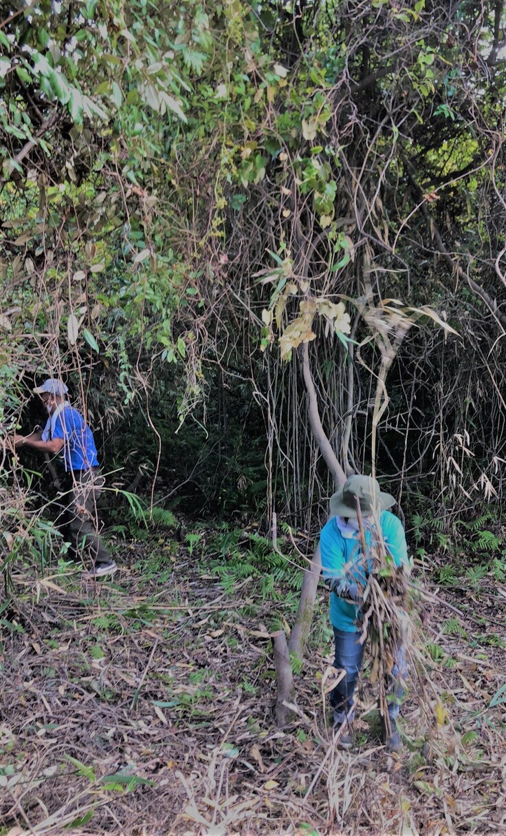 大自然の魅力あふれるふるさと新島が、無人島となり荒廃していく様子に胸を痛めた私たちは、2013年からボランティア活動を開始。当時住んでいた北九州市から月2回程新島へ通っていました。ジャングルのような伸び放題になっていた草を払うことから始めました。