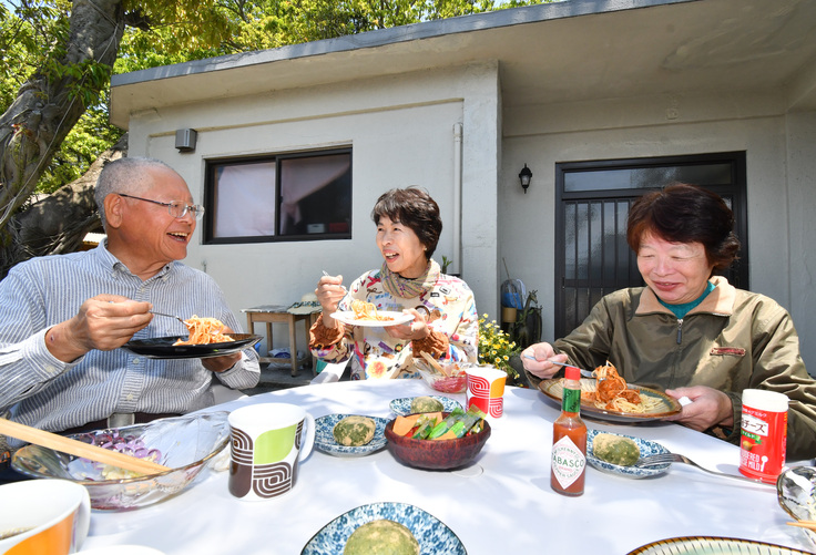 現在は公民館と我が家のわずかな玄関の庇(ひさし)の下に身を寄せ合って雨風をしのいでいます。冷暖房もないので、熱中症対策も充分に行うことができません。