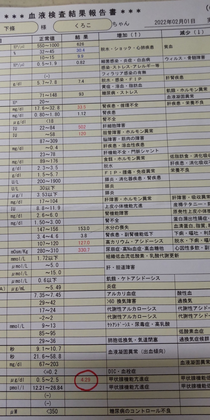 ●これはクロ子ちゃんの甲状腺機能亢進症の検査