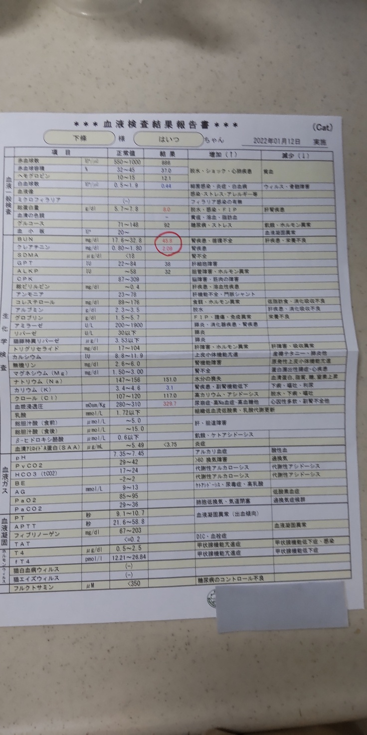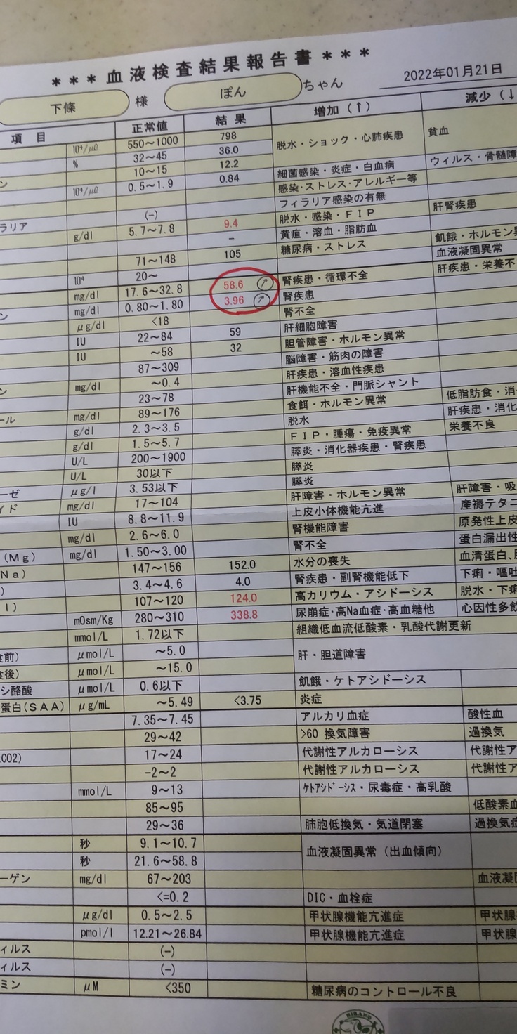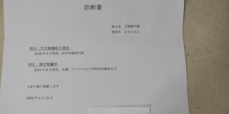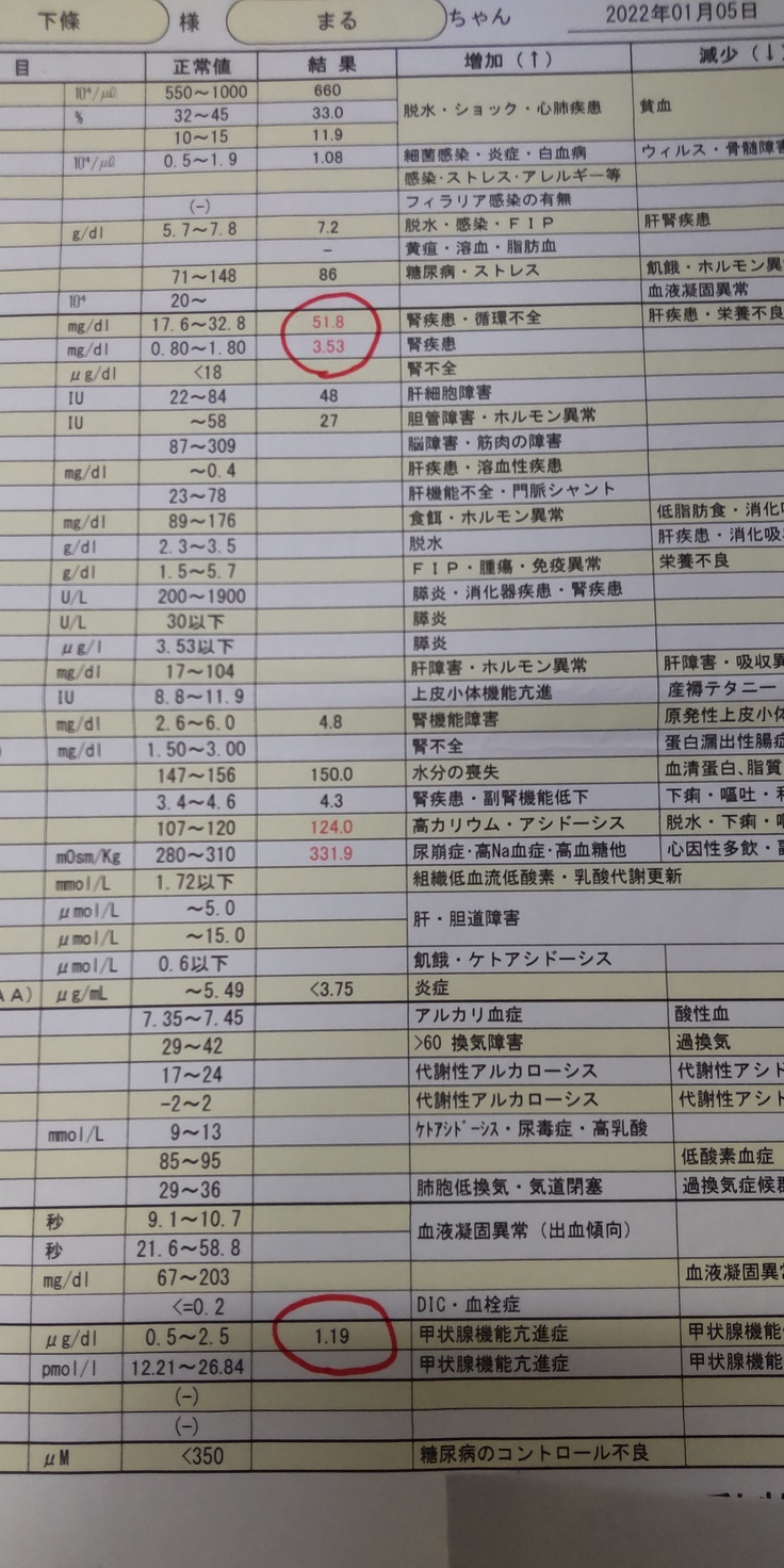 ●まるちゃん、薬を飲んで甲状腺が正常値になりましたが、腎臓が悪いです