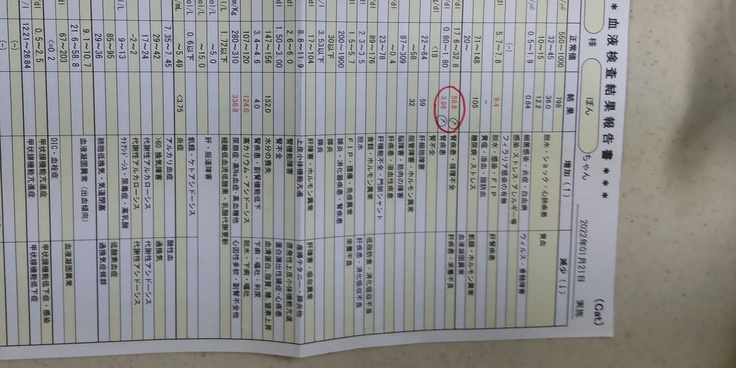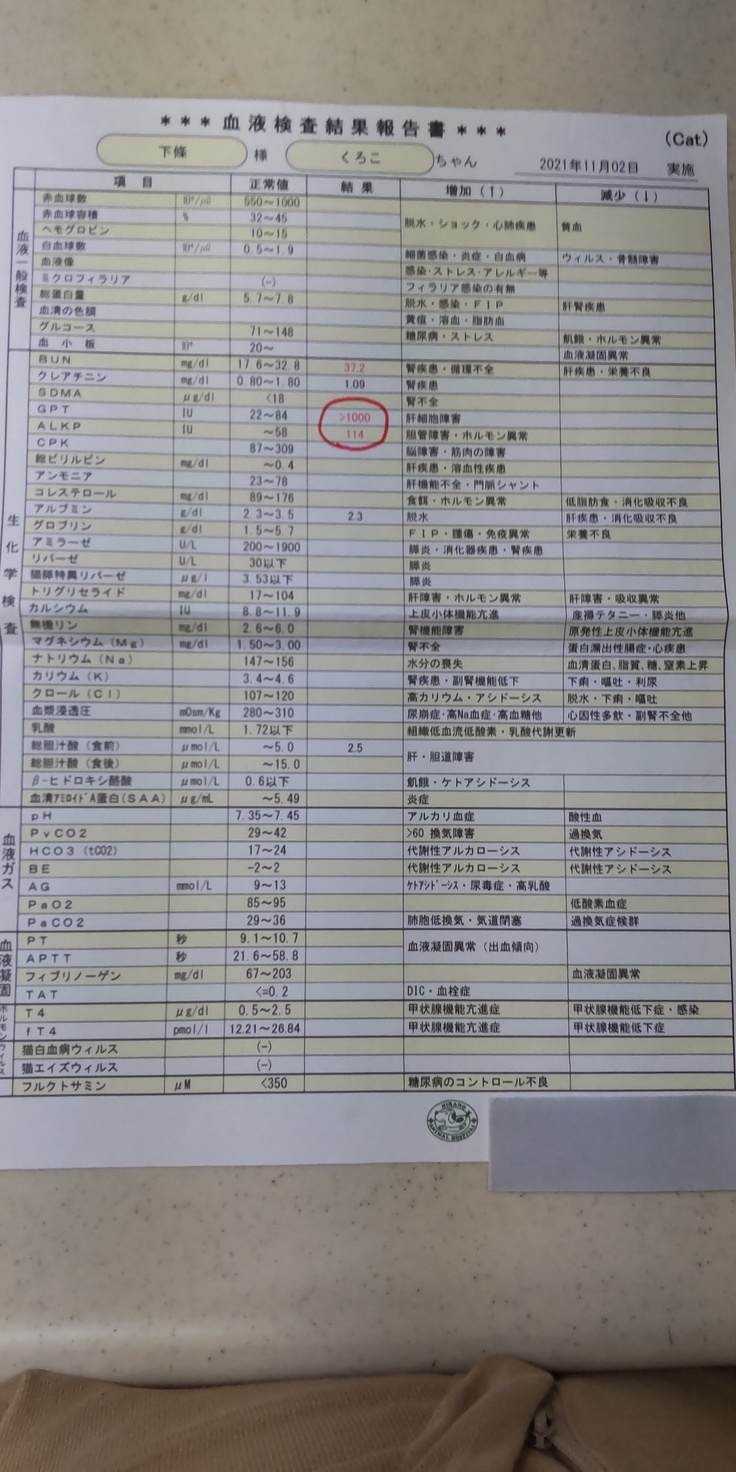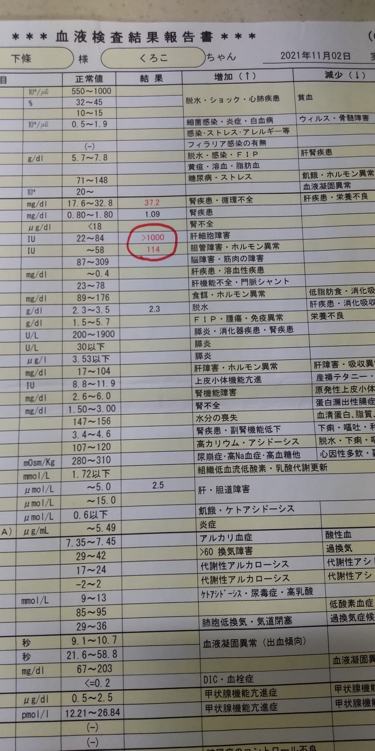 ●これは、くろ子ちゃんの肝臓の数値が振り切れていた検査結果です