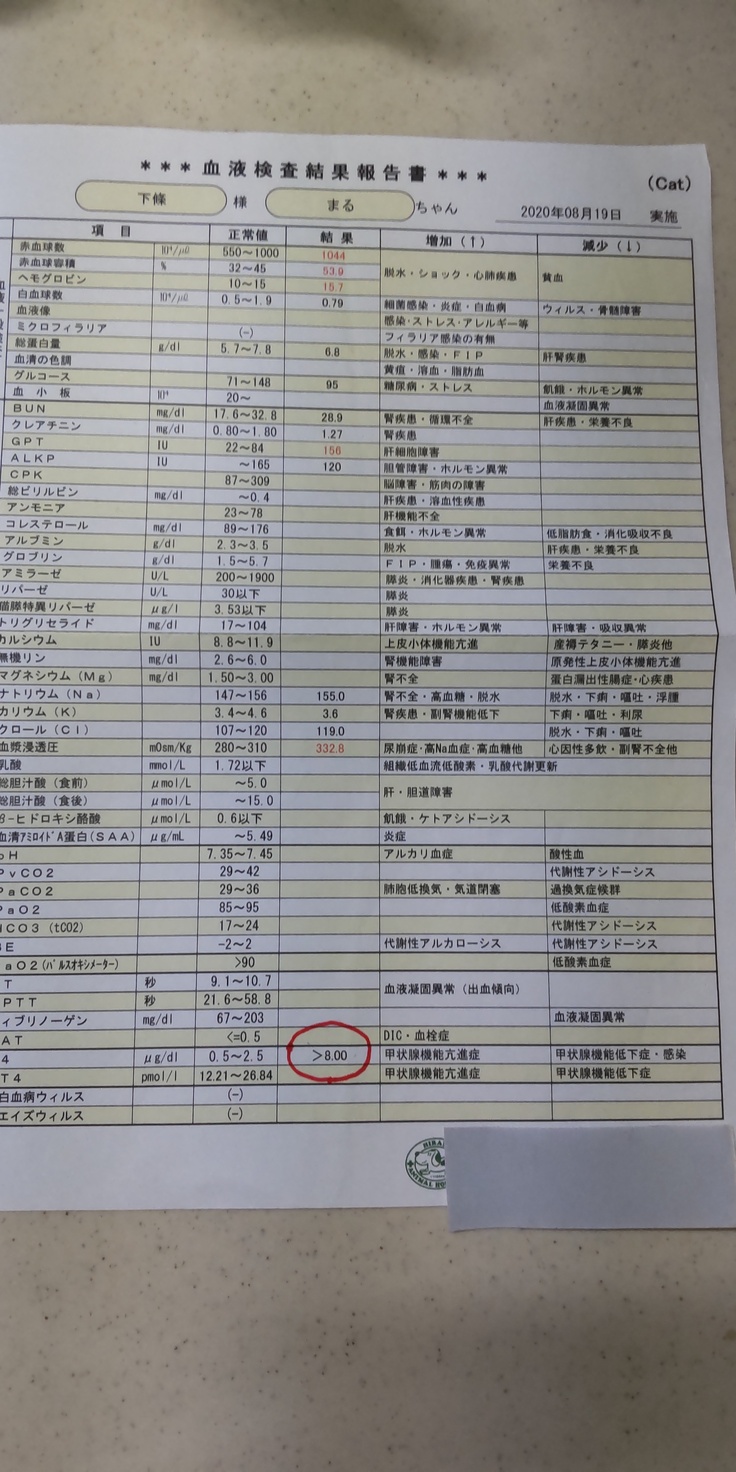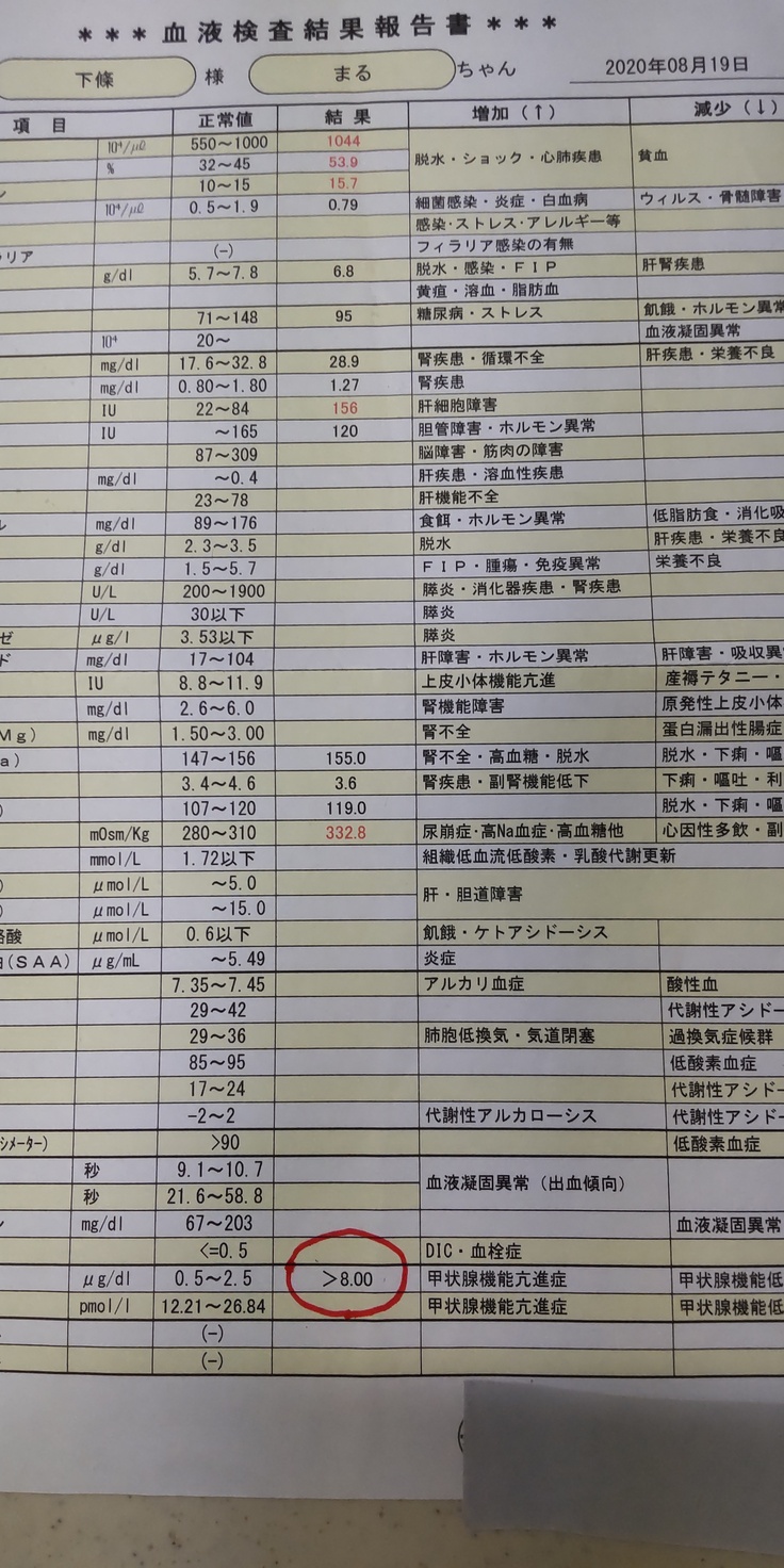●まるちゃんの甲状腺機能亢進症の数値がとても高いです