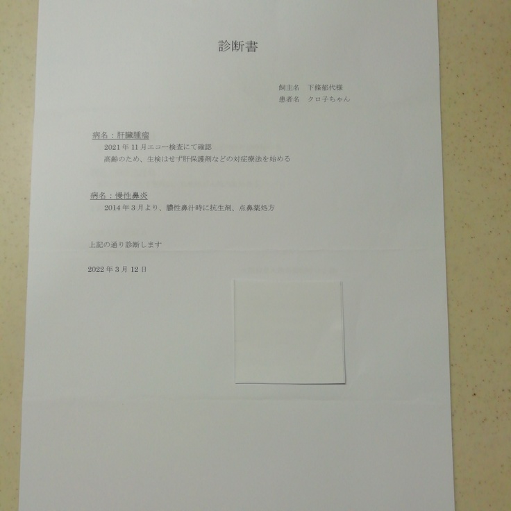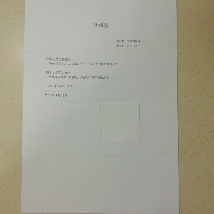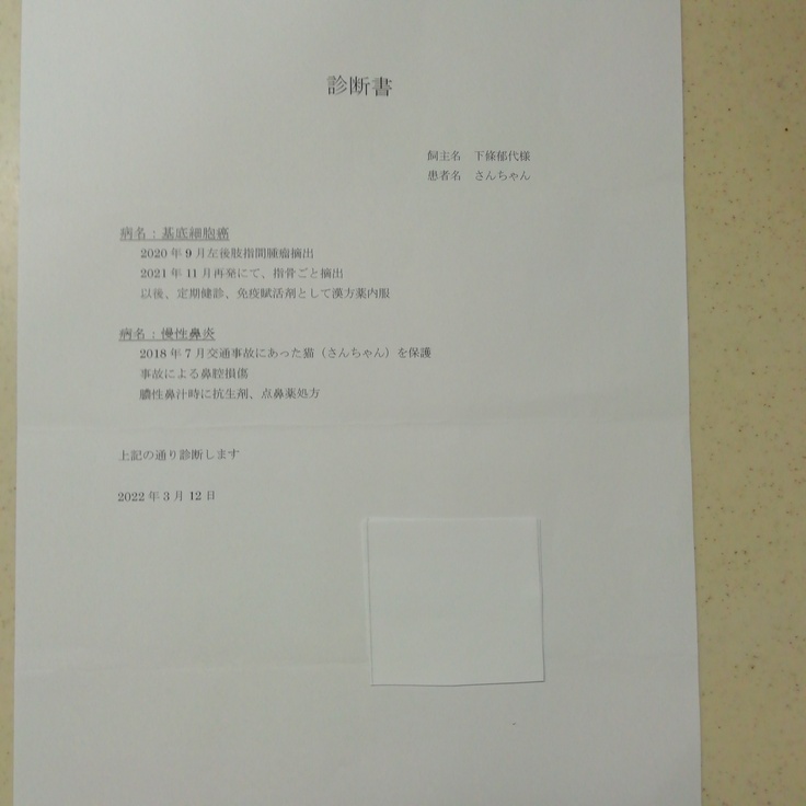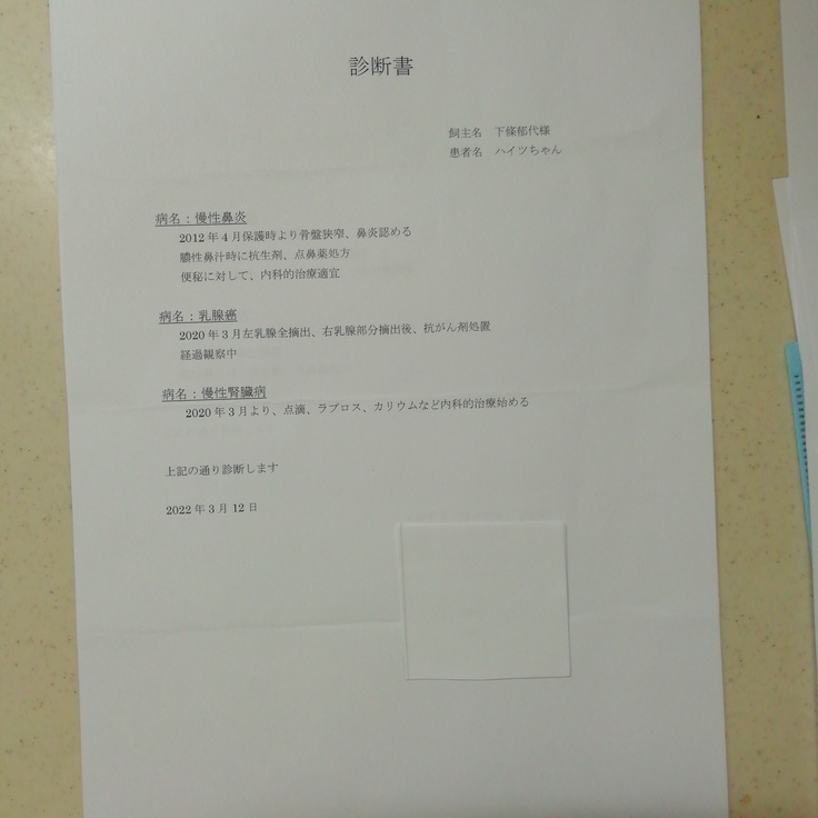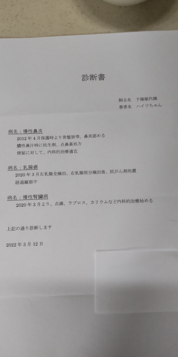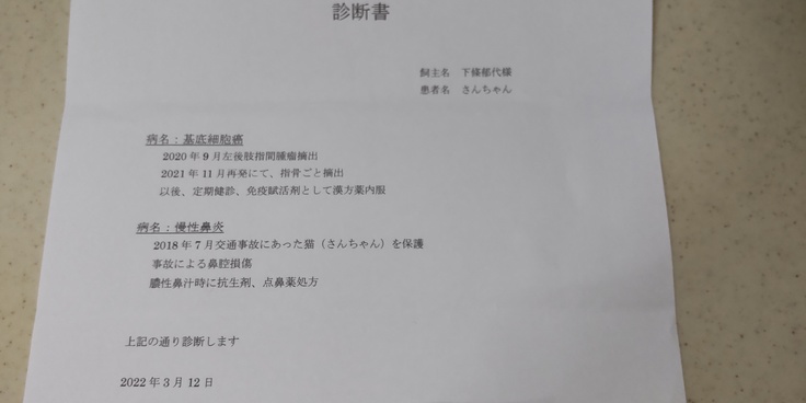 この申請を始めようとしたときは、三匹とも、癌の再発はしていませんでしたが、