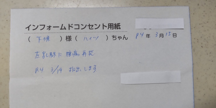 この度、ハイツちゃんに再発が見つかり、緊急に手術いたします。