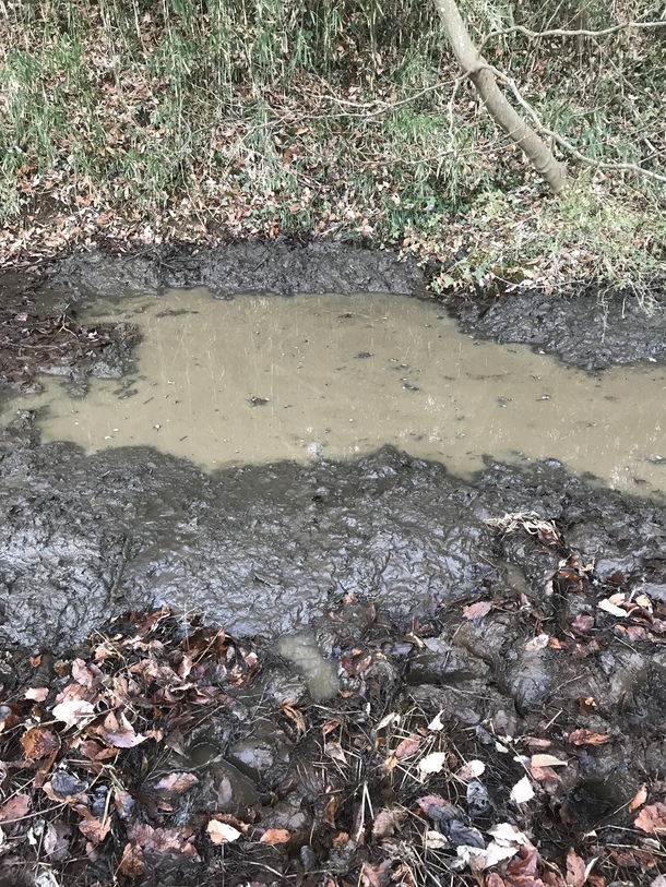 豪雨で埋まった池を少しずつ掘りかえす作業