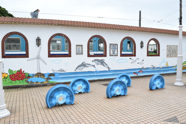 銚電メイクアッププロジェクト!の一環として犬吠駅駅舎の壁をペイントで綺麗にしました。
