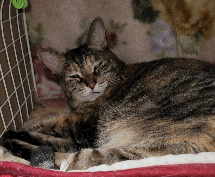 風邪で「黄色い鼻汁」が数か月止まらず。通院後、血液検査の結果、「肝臓・糖尿病」の可能性があるとのことで、2月19日再診後、3日間の通院で皮下点滴治療を受けることになりました。今後、定期的に血液検査をしていきます。この子は自宅での投薬は無理なので通院するしか方法がありません。寝床代わりに置いているキャリーバッグで寝ている時を狙って捕まえるしかないので大変です。初診から2週間後の検診で体重が1キロ弱激減したので、食欲と排便、尿の状態を細かく観察する必要があります。猫数が多いので特定するのも大変です。下痢が続いています。