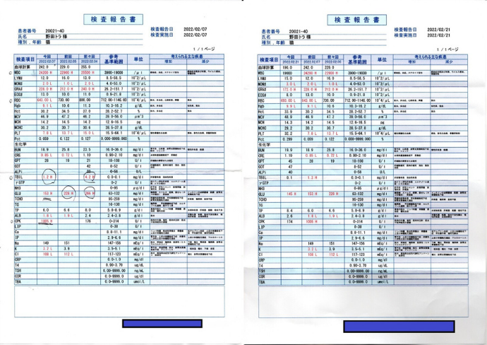 トラ君、ヒロ君、くうちゃんの検査結果の赤く表示された値の内容が同じなので、何かの中毒である可能性が高いと言われました。日常生活で最近変わったことがないか問われました。