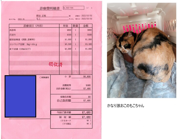 もこちゃん:超音波検査により前回と同じ尿結晶と診断。