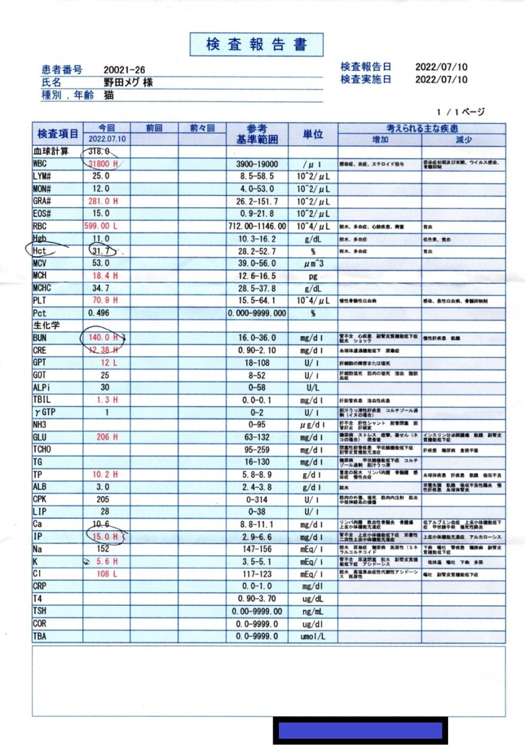 血液検査の結果、重度の腎不全を起こしていることがわかりました。