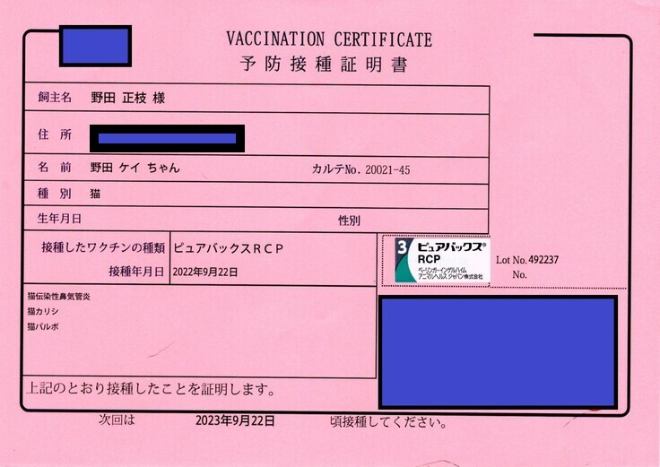 2022年9月22日 ワクチン接種と再診で2匹通院しました