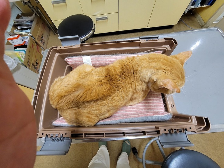 たまたまキャリーバッグで昼寝中だったのでラッキーでした。